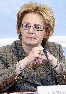 Veroníka Ígorevna Skvortsóva (Russian: Верони́ка И́горевна Скворцо́ва; born November 1, 1960 in Moscow) is a Russian neurologist, politician and since May 2012 the Minister of Health of the Russian Federation.