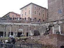 In 367, during his tenure as praefectus urbi, he oversaw the restoration of the Porticus Deorum Consentium in the Roman Forum (41°53′33.2″N 12°29′1.27″E / 41.892556°N 12.4836861°E), the last great monument devoted to a Pagan cult in Rome.[25] Even if this was a simple restoration of the damaged statues and a renovation of the worship, it was a symbolic choice, as the Di Consentes were the protectors of the Senate,[32] and therefore used to balance the power of the Emperor (it is significant the fact that the inscription does not mention the Emperor).[33] It has been also proposed that the restoration of the cult of the Di Consentes appealed to Praetextatus as a propagation of "his ideology of the numen multiplex" cited in his funerary poem.[33]