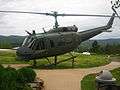The memorial maintains a UH-1D model Huey helicopter known originally as "Viking Surprise," one of the first smokeships used in Vietnam. On March 26, 1967, the helicopter, while rescuing service personnel, was so badly damaged – 135 bullet holes – that it was returned to the United States for repairs. The copter returned to Vietnam and was later sent to the New Mexico National Guard, which donated it to the Angel Fire memorial.[1]