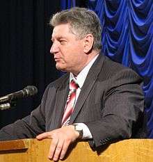 Viktor Alksnis (Russian: Виктор Имантович Алкснис, Latvian: Viktors Alksnis; born 21 June 1950) is an ethnic Latvian Russian politician and former Soviet Air Force colonel.[1][2] He is the chairman of Russian Center of Free Technologies,[3] an organization intended to promote Free Software and open standards in Russia. He is a former member of the USSR Supreme Soviet, a member of the Russian All-People's Union and has also represented the Rodina (Motherland-National Patriotic Union) party in the Russian State Duma. From 2003 to 2007, he represented the People's Union party in the Fourth Duma.[4][5]