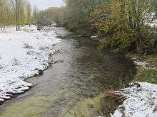 Snowy day in Valdavia river at Villamelendro de Valdavia.