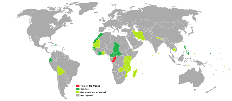 Visa requirements for Republic of the Congo citizens are administrative entry restrictions by the authorities of other states placed on citizens of Republic of the Congo. In February 2016, Republic of the Congo citizens had visa-free or visa on arrival access to 44 countries and territories, ranking the Republic of the Congo passport 93th in the world (tied with Djibouti).[1]