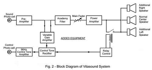 The additional apparatus required for Vitasound was relatively modest: two additional loudspeakers, the variable-gain amplifier and relay unit, and a reader for the control track which was a fairly easy retrofit to existing 35mm projectors. There were no changes in operating compared to showing a standard film, and prints, which cost no more to make than standard ones, were compatible with theaters not equipped for Vitasound. So in other circumstances Vitasound might well have become the de facto standard for release prints just as Dolby Stereo was to become 4 decades later.