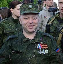 Vladimir Petrovich Kononov (Russian: Влади́мир Петро́вич Ко́нонов; born October 14, 1974; nom de guerre Tsar)[1] is the Defence Minister of the self-proclaimed Donetsk People's Republic. His appointment was confirmed on August 15, 2014, after the resignation of Igor Girkin.[1][2] Kononov is a Donetsk local.[3] In 2014, he was a Lieutenant colonel, and by 2015 was promoted to Major general.