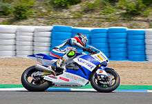 Vladimir Vladimirovich Leonov (Russian: Владимир Владимирович Леонов; born 26 April 1987)[1] is a Russian professional motorcycle racer. He has competed in the 250cc World Championship, the Moto2 World Championship and the Supersport World Championship. Leonov was the first Russian to achieve a podium finish in the latter category, a third place in rainy conditions in the 2012 Assen round.[2]