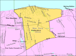 - 1 2 "Geographic Identifiers: 2010 Demographic Profile Data (G001): Wading River CDP, New York". U.S. Census Bureau, American Factfinder. Retrieved 2013-01-10.