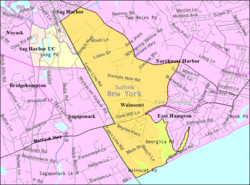 Wainscott is a census-designated place (CDP) that roughly corresponds to the hamlet with the same name in the Town of East Hampton in Suffolk County, New York, on the South Fork of Long Island. As of the 2010 United States Census, the CDP population was 650.[1] The CDP was created for the 2000 census.[2]