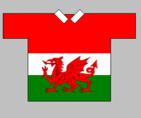 Similar to many other Welsh national sporting teams, Wales strip has been primarily red for many years, including now. However, in their last World Cup campaign in 2000 they did wear a shirt featuring the Welsh flag, adding a touch of green and white. The team is known as "The Dragons" and so the teams logo on the shirt is a red dragon.