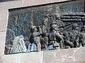 The relief on the war memorial at Proyart above the allegory of France greeting a soldier- Soldiers marching by.