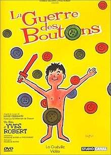 La Guerre des boutons or War of the Buttons is a 1962 French film directed by Yves Robert. War of the Buttons is about two rival kid gangs whose playful combats escalate into violence. The title derives from the buttons that are cut off from the rival team's clothes as combat trophies. The film is based on La Guerre des boutons, a novel by Louis Pergaud (1882–1915), who was killed in action in World War I and whose works portray a fervent anti-militarism.