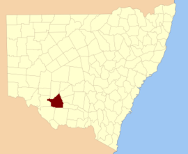 | Wilgah | Hay Shire Council | 34°36′54″S 145°05′04″E / 34.61500°S 145.08444°E / -34.61500; 145.08444 (Wilgah Parish) |
