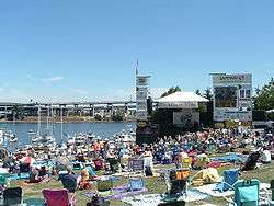 The Waterfront Blues Festival is an annual event in Portland, Oregon, United States featuring three to five days of performances by blues musicians. The festival started in 1988 and takes place in Tom McCall Waterfront Park, along the west bank of the Willamette River in downtown Portland. It is the largest blues festival on the West Coast and the second-largest blues festival in the nation, with recent events attracting 120,000 blues fans from throughout the world with more than 150 performances on four stages.[1][2] The festival benefits the Oregon Food Bank, a non-profit organization which provides food to low-income persons in Oregon and SW Washington states.