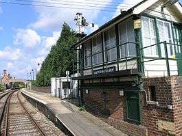 The signal box, which was Grade II listed in 2013[2] remains to control the level crossing gates.