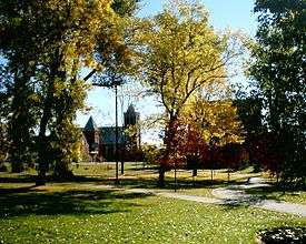 At the westernmost end of Waverley Park is the former Port Arthur Collegiate Institute, which was the oldest high school west of Toronto. The large castle-like edifice was constructed in 1909-10 of Simpson Island sandstone, and incorporated medieval and Flemish architectural features. Being located on a hill, it has a very imposing nature when viewed from the park below. Its site was chosen by Montreal landscape architect Frederick Todd, and its architects were Young and Simpson of Toronto.[2]