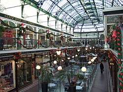 Wayfarers Arcade (previously the Leyland Arcade and Burton Arcade) is a Grade II listed structure located in the seaside town of Southport, Merseyside on the famous boulevard of Lord Street in the town centre. The arcade is a near untouched building with the glass dome and Victorian shop fronts below it, creating a shopping arcade.[1]