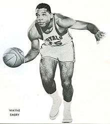Wayne Richard Embry (born March 26, 1937) is a retired American basketball player; a center/forward whose 11-year career spanned from 1958 to 1969. He played for the Cincinnati Royals, Boston Celtics and Milwaukee Bucks, all of the NBA.