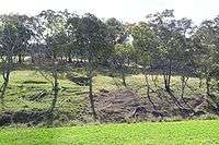 The countryside varies from open undulating valleys to steep hills. Some abandoned mines may be seen in the region. Native apples, box trees (Eucalyptus melliodora), gums, ironbark, peppermint and stringybark (Eucalyptus caliginosa) trees are common across the area.