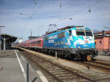 In 1924, Deutsche Reichsbahn electrified the line from Munich to Garmisch-Partenkirchen. Electrical operations began between Weilheim and Garmisch-Partenkirchen on 5 January 1925 and electrical operations began between Weilheim and Starnberg on 16 February 1925. Electrical operations on the whole line from Munich to Garmisch-Partenkirchen began on 20 January 1925 and continued over the Mittenwald Railway to Mittenwald and Innsbruck.[6] On 1 May 1925, the Pfaffenwinkel Railway between Weilheim and Peissenberg was also electrified; the electrification on this line mainly served coal transportation.[5]