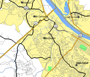 Westwood is a census-designated place (CDP) in Boyd County, Kentucky, United States. The population was 4,746 at the 2010 census.[1] It serves as a suburb of the city of Ashland. Westwood is closely affiliated with Ashland, as it shares its ZIP code and bus system with the city. Westwood is located on a flat to hilly elevation just west of the Ohio River. The flat hilltop is unusual to eastern Kentucky and was created by the preglacial Teays River which existed in ancient times and flowed in the opposite direction of the Ohio River.