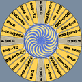 The wheel has 96 pegs with 24 spaces that are each four pegs wide. These spaces represent cash values (in multiples of 5 instead of 50 in the American version), prizes and penalty spaces, three strategic elements for use in the game. The wheel also features two additional spaces that are specific to particular rounds of the game (see below).