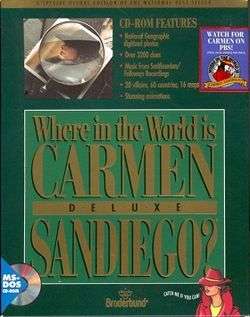 Where in the World Is Carmen Sandiego? Deluxe, the second version of Where in the World Is Carmen Sandiego?, was released in 1992 featuring additional animation and a reworked interface from the 1985 version. Some of the bonus features include: "digitized photos from National Geographic, over 3200 clues, music from the Smithsonian/Folkways Recordings, 20 villains, 60 countries, and 16 maps".[1] CD-ROM versions for DOS and Macintosh were released in 1992, and a Windows version was released in 1994. Sometimes the 1996 reboot version is mistakenly called the "Deluxe" version.[2] Also not to be confused with Where in the World Is Carmen Sandiego? (Enhanced), released in 1990.