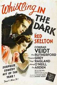 Whistling in the Dark is the first of three comedy films starring Red Skelton as Wally "the Fox" Benton, who writes and acts in radio murder mysteries. Wally is kidnapped by a greedy cult leader (played by Conrad Veidt), who threatens to kill Wally's girlfriend (portrayed in all three films by Ann Rutherford) and another young woman unless he concocts a perfect murder. The film was based on the Broadway play of the same name by Laurence Gross and Edward Childs Carpenter. Uncredited contributing writer Elliott Nugent wrote and directed the earlier film adaptation of the same name.