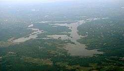 Before European settlement the lake was known as Wa-ba-lac by the local natives. In the Johnston Royal atlas (dated 1860) the lake was shown as Wabak or White Lake. The lake name is believed to be derived from the white marl deposits covering large portions of the lake substrate.[2] White Lake was created in 1845 when a dam on Waba Creek was constructed resulting in the water levels increasing in three previously small, interconnected waterbodies. The dam was originally constructed to facilitate the movement of logs to Stewart's sawmill further downstream.[3] The dam was rebuilt and repaired several times during the 1900's and currently exits as a 0.2 MV Hydroelectic Dam operated by Misty Rapids Power.[4]