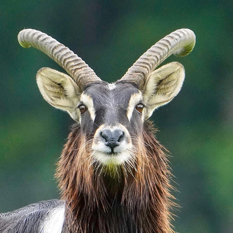 Native to lands across Africa, the roan antelope is in the family of “horse antelopes” and can weigh up to 750 pounds. They are classified as a species of least concern and are known for strength and aggression, defending their herds and calves even against lions.[55]