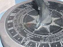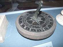 The Whitehurst & Son Sundial was produced in Derby in 1812 by the nephew of John Whitehurst.[1] It is now in the Derby Museum and Art Gallery. It is a fine example of a precision sundial telling local apparent time with a scale to convert this to local mean time. It is accurate to the nearest minute.
