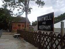 Whitwell and Reepham railway station, also known as Whitwell station, is a former station situated in Norfolk, England.[3] The station closed in 1959 and is a notable stop on the Marriott's Way long-distance footpath. It is being restored as a railway museum, including the re-laying of track.