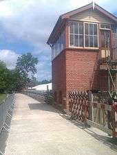 | Whitwell & Reepham | New build | M&GNJR | The original signal box was located to the south of the station platforms, but was demolished following closure of the line to passengers. The reconstructed box is located on the original footings and reflects the design of the original. The signal box, complete with instruments, was recovered from a garden in Elmswell, Suffolk and the National Railway Museum in York has donated a 20 lever Saxby and Farmer frame which originally came from Beccles South Box in Suffolk. | ![]() |