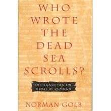 Who Wrote The Dead Sea Scrolls?: The Search For The Secret Of Qumran[1] is a book by Norman Golb which intensifies the debate over the origins of the Dead Sea scrolls, furthering the opinion that the scrolls were not the work of the Essenes, as other scholars claim, but written in Jerusalem and moved to Qumran in anticipation of the Roman siege in 70 AD.