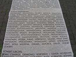 Monument in memory of the Polish victims of Volhynian massacre including Wiśniowiec Nowy and Wiśniowiec Stary, Warsaw | |