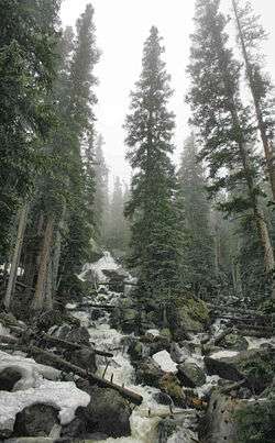 Wild Basin is a scenic trail and the southeastern entrance station of Rocky Mountain National Park in Colorado, United States. It is located north of Allenspark off State Highway 7.