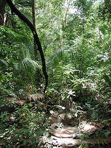 Approximately 15% of the country has forest cover while wooded land constitutes approximately 34% of the area. Very little closed forest can be found and this is mainly of the gallery forest type along waterways. The open forests include savanna of four types, namely Sahelian, Sahelian-Sudanian, Sudanian, and Sudanian-Guinean.[11] Though much of the country is dry and sparse, vegetation can vary considerably. Northern Burkina Faso consists mainly of savanna, acacia woodland, and during the wet season, prickly shrubs and stunted trees flourish.[1] Herbaceous plants include broadleaf deciduous, shrub, desert shrub, semi-desert savanna and thorny scrub. Crops include Banana, Cassava, Bougainvillea, Cotton, Guava, Maize, Spinach, Malabar Spinach, Millet, Onions, Papaya, Sorghum, Tomatoes, and Yams. Most of the country consists of sparse savanna grasslands, with the occasional shrub or acacia. Although the country only has about 15% forest cover overall, there are many forests in the south, growing denser along the banks of the perennial rivers.[1] These include Diéfoula Forest, Logoniégué Forest, Laba Forest, Dida Forest, Koulbi National Forest, Bontioli Reserve Forest, Nabere Partial Reserve Forest, Koflandé Forest, Maro Forest, Tui Forest, Deux Balés Forest, Kalio Forest, Tisse Forest, Dibon Forest, Pâ Forest, Mou Forest, Boulon Forest, Tigo Forest, Nakambe Forest and Niangoloko Forest, of which about 16% have official protection.