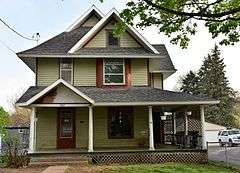 The William A. and Ida C. Johnson House is a historic residence located in Oskaloosa, Iowa, United States. The Johnsons, who were farmers, moved to town so that their children could attend Quaker schools there. This was typical of many Quaker families of that era.[2] Other family members also boarded with them so they too could attend the schools. William Johnson also served on the William Penn College Board of Trustees, and served as its president from 1915 through 1922. It was during his tenure that the Main Building was destroyed by fire and the college moved to its present location. This Queen Anne style house is a 2½-story, frame, single-family dwelling. It features a wrap-around full-width porch with a gable-end entryway, and a bay window on the main facade. The house is capped with a complex roof of intersecting steeply-pitched gables. It is the Johnsons' association with the school in the context of the Quaker testimony in Oskaloosa that makes this house historic.[2] It was listed on the National Register of Historic Places in 1996.[1]