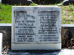 - ↑ Smith William Forgan — Brisbane City Council Grave Location Search. Retrieved 7 January 2015.