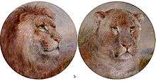 William Huggins was born in Liverpool. His parents were called Samuel and Elizabeth. He received his first instruction in drawing at the Liverpool Mechanics' Institution. He won a prize for "Adam's Vision of the Death of Abel" and successfully entered work to be shown at the Liverpool Academy of Arts whilst fifteen years old.[1] He drew from life using the classes at the Academy of Arts or by sketching the animals in Liverpool's zoo.[1] He travelled further afield to see exotic animals at the unusual Wombwell’s Travelling Menagerie.[5] His animal work was admired and compared to Stubbs. Huggins was magnanimous in acknowledging Stubbs' influence and this contrasts with a later comparison that was made with Landseer where Huggins felt insulted. Huggins pictures of exotic animals were much admired but they are noted for lack of background as Huggins never saw them in their own habitat.[6]