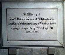 In 1804 Lyman was appointed U.S. consul in London. He died while on duty 22 September 1811 and is interred in the Cathedral at Gloucester, England.