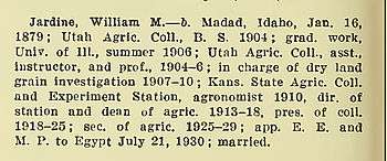 - ↑ "William Marion Jardine". Find A Grave. Retrieved September 25, 2012.