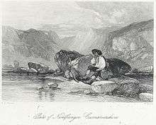 - Italian Goatherds, detail from engraving by William Miller after J S Lauder, Royal Association for the Promotion of the Fine Arts in Scotland, 1843