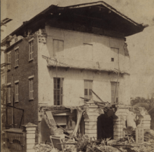 The William Ravenel House was built in 1845 by shipping merchant William Ravenel. The drawing room runs the entire width of the house and is perhaps the largest drawing room in Charleston.[1] The house suffered severe damage in the 1886 Charleston earthquake; its giant order Tower of the Winds portico was destroyed, leaving only the base. One of the capitals from the columns was unearthed 73 years later when Hurricane Gracie felled a tree which had grown atop the capital where it had fallen and been imbedded in the soft soil.[2] The drawing room of the house spans the width of the house and has been described as the largest room in Charleston.[3]
