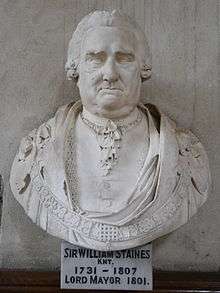 - ↑ "Sir William Staines, Lord Mayor of London (1800)". BBC. Retrieved 24 September 2014.