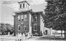 1876 - District Two is enlarged and a new, larger school building is built on Miller Street, on what is now the front lawn of the Middle School. D.D. Warne is the principal of this two-story structure, which has two classrooms on the first floor and the town's first auditorium on the second. Maple Avenue is created to provide access to the school. While the school serves primarily District Two children, children from some of the other 12 districts in Williamson attend as well (thanks to tuition paid by their respective districts).