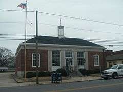 Williamston Commercial Historic District is a national historic district located at Williamston, Martin County, North Carolina. The district encompasses 31 contributing buildings in the central business district of Williamston. They include notable examples of Greek Revival, Colonial Revival, and Romanesque architecture in buildings dated from the mid-19th century through the 1920s. Located in the district is the separately listed Martin County Courthouse. Other notable buildings include the Docton W. Bagley Building (c. 1850), (former) People's Bank (1917), Watts Theatre (1929/1940/c. 1968), the Tar Heel Apartments (1921), the Flatiron Building, and the United States Post Office (1938).[2] The post office contains a mural, First Flight of the Wright Brothers at Kitty Hawk, by Philip von Saltza, painted in 1940 as part of the Works Project Administration's mural project.