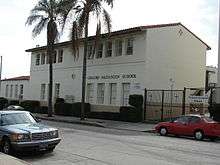 St. Gregory Nazianzen is a Catholic church owned by the Archdiocese of Los Angeles since 1923. The current cast concrete building and adjacent school were dedicated in 1938, but the area around the intersection of Norton and 9th Street had been operating as a church and school for fifteen years prior.[12][13]
