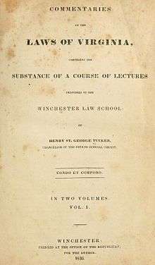 Using his father St. George Tucker's copies of Blackstone's Commentaries as the basis for his instruction, Henry Tucker lectured three days each week and gave his students regular quizzes to test their knowledge. In addition, he prepared, edited and published Tucker's Notes on Blackstone's Commentaries for the Use of Students. Tucker's Commentaries provided the current state and federal law on each point covered by Blackstone, and was widely used because it focused on United States common law rather than English legal and political theory.[3]
