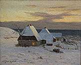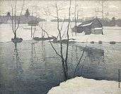 The depiction of winter landscapes in Western art begins in the 15th century. Wintry and snowy landscapes are not seen in early European painting since most of the subjects were religious. Painters avoided landscapes in general for the same reason. The first depictions of snow began to occur in the 15th and 16th centuries.[1] Paintings that feature snow as a theme are mostly landscapes, even if some of these works involve religious or even fantasy landscapes. Most of these winter landscapes in art history are plein-air depictions of winter scenes, using the quality of gray winter light to create the special winter atmosphere.