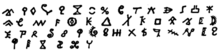 - ↑ According to an unreferenced site on the web (), pu was a sketch of a fish, from the Woleaian word pu "fish"; likewise shrü "spine", lö "bottle", ngä "bamboo", warr "canoe". Of these, ngä seems to correspond to ngae [ŋe], pu to bu [ɸʷu]~[pːʷu], and lö to noe [lø]~[nːø], whereas no CCV or CVC syllables like shrü or warr are included.