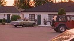 Outside the hotel room of the paroled criminals. Pine trees are seen to take up most of the sky. A critic heavily criticized the scene and the setting for it, saying that it ruined the show's appearance of taking place in Santa Barbara, California | |